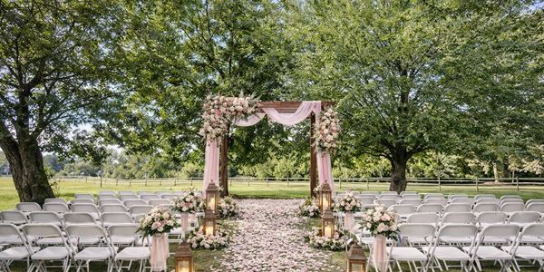 This ceremony location is surrounded by trees to create an intimate shaded area.