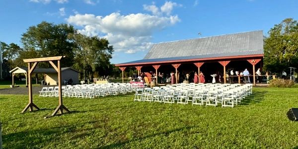 Newly renovated barn with covered open area "lean-to" overlooking the vineyard. Open manicured grass area for fun outdoor games or ceremony. Two options for ceremony location.